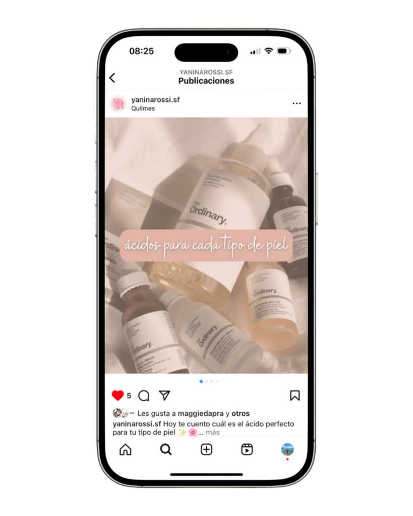En este proyecto colaboramos con Yanina Rossi, cosmetóloga especializada en salud facial, para fortalecer su presencia digital y optimizar su estrategia de contenido en redes sociales.